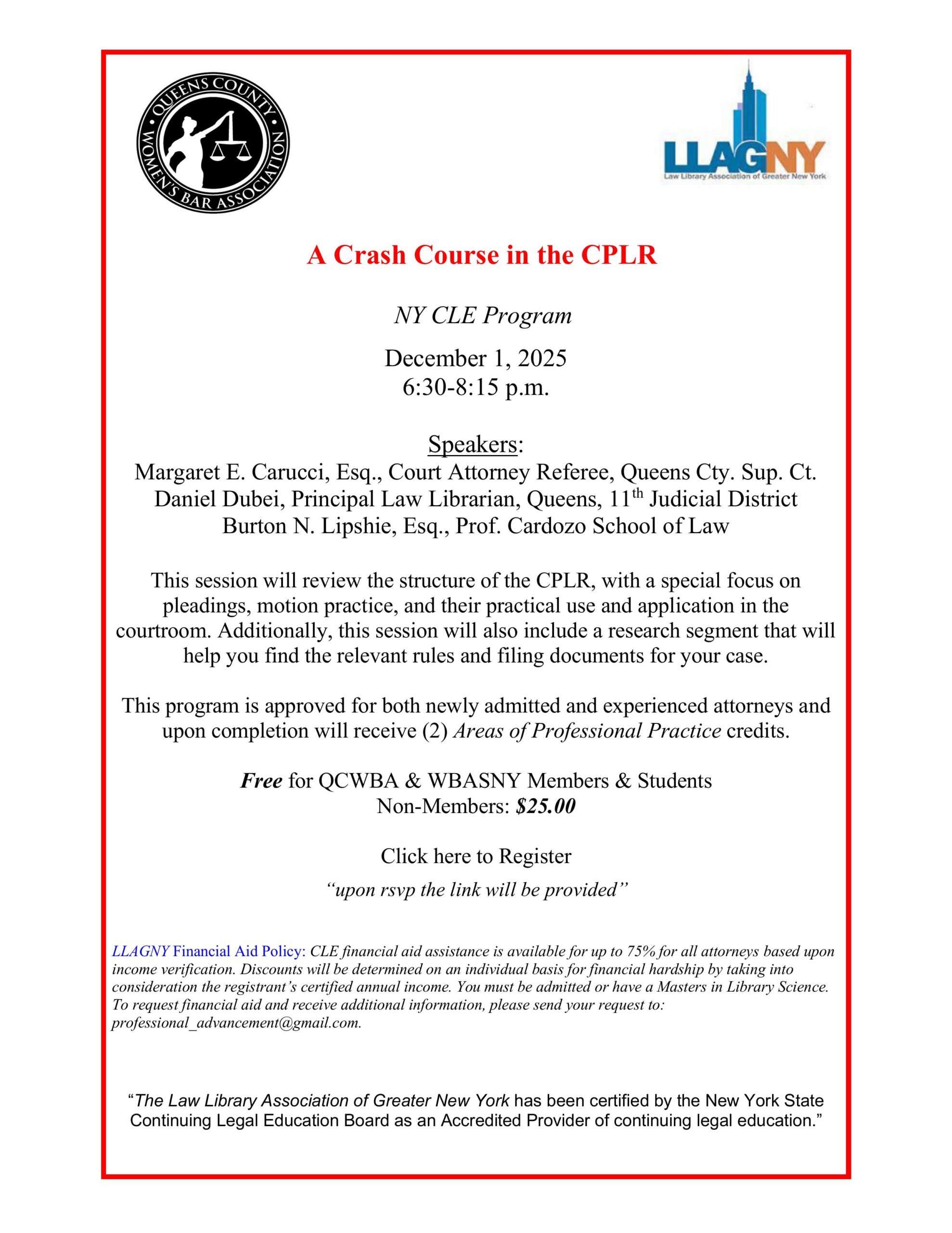 Thursday, Dec. 11, 5:30pm-9:30pmQCWBA Book Club – January 14, 2026